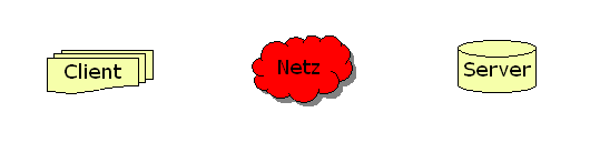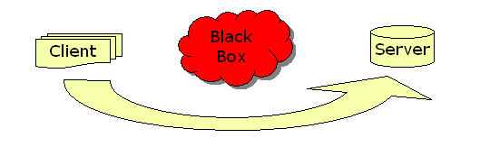 Der zweite Schritt wäre der Test des Client und des Servers. Es wird nun angenommen, dass das dazwischenliegende Netz keinen Einfluss auf den Datenstrom hat (Black Box), so als wäre der Client direkt mit den Server verbunden.